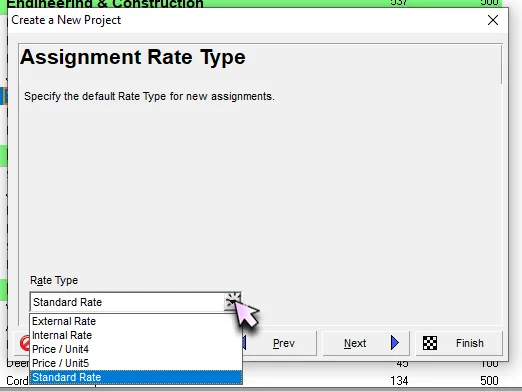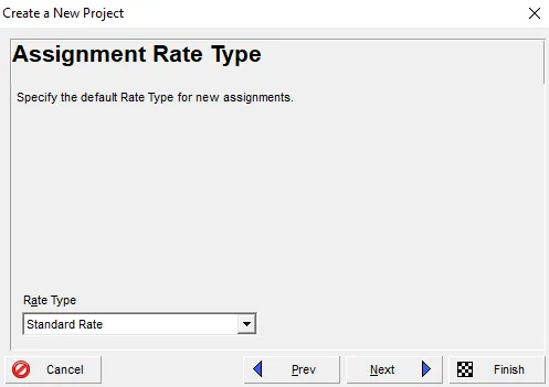 Next, assign a Rate Type, which determines the standard cost rates for any resources or roles linked to the project. These rates are predefined by your Primavera P6 database administrator.