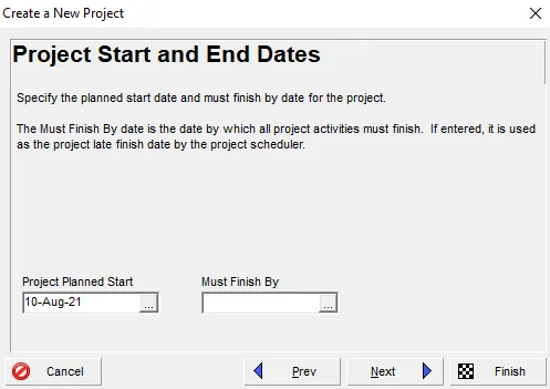 The “Must Finish By” field is optional. It won’t restrict the project’s schedule, but it is a useful reference for tracking whether it is on time, early, or delayed. Click Next to proceed.