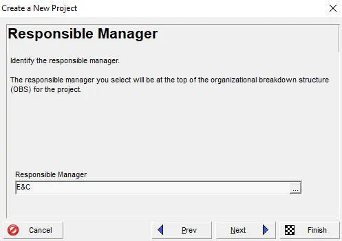 Now assign a Responsible Manager from the Organizational Breakdown Structure (OBS).