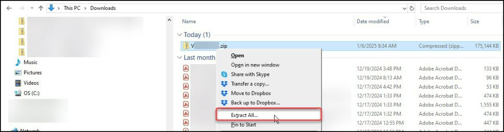 - In File Explorer, right-click the ZIP file and choose Extract All.