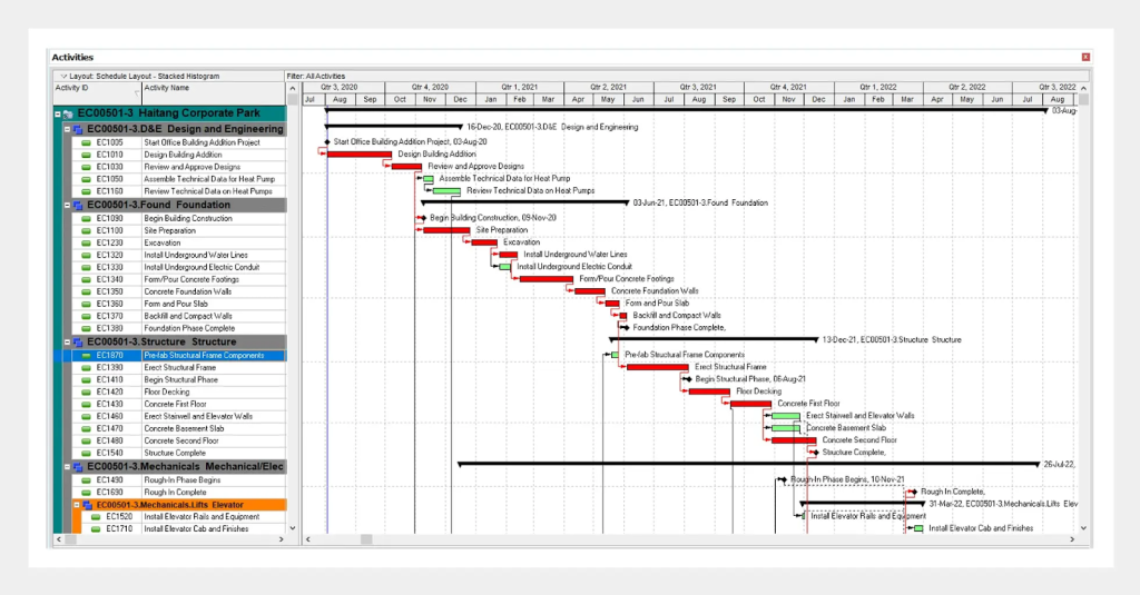 Each activity defines a specific task with a set start date, finish date, and duration. For instance, in construction, activities may include excavation, foundation, and framing; while in software development, they could involve coding, testing, and deployment.