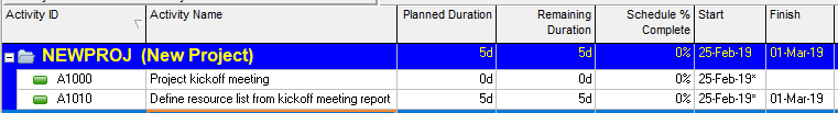 - Your activity list will now adjust automatically. For example, the start date for the Define resource list from the kickoff meeting report will realign with the Project kickoff meeting based on the finish-to-start dependency.