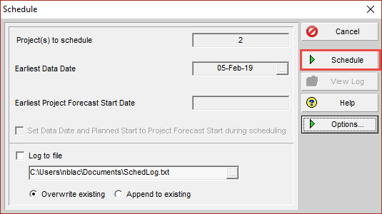 - Go to the P6 ribbon and navigate to Tools > Schedule to access the Schedule dialog box.